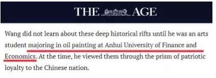 图为澳大利亚媒体在报道中也提到王立强是安徽财经大学学油画的学生