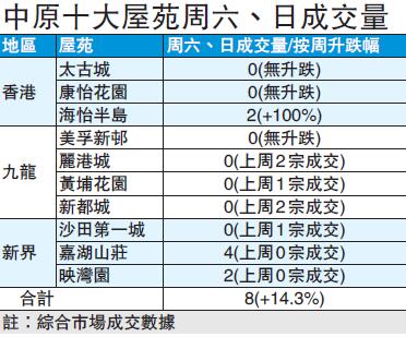 十大屋苑成交量個位數