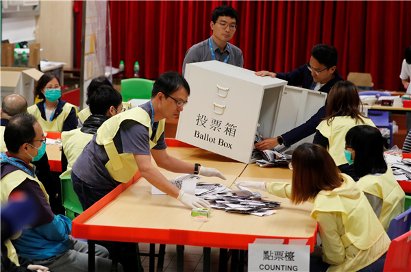 區議會投票結束後,經過13 個小時點算選票,所有民選議席各有所屬。中通社