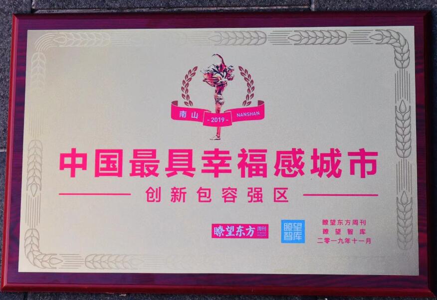 中國幸福城市論壇授予南山區 「中國最具幸福感城市?創新包容強區」稱號