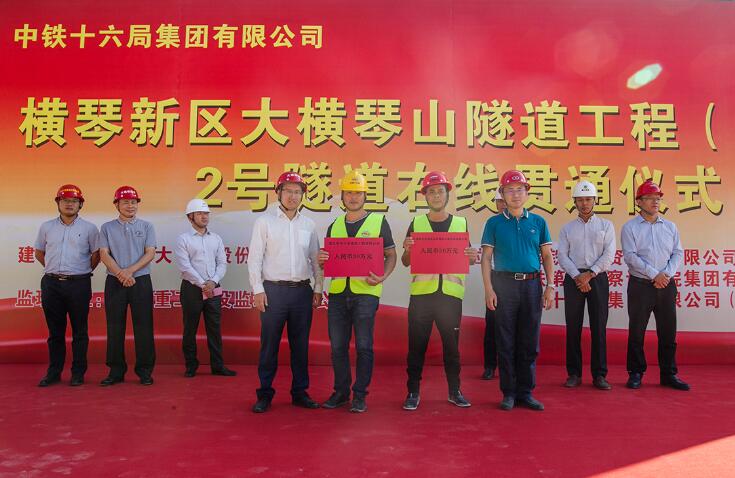 據隧道承建方——中鐵十六局集團路橋公司、南方工程有限公司黨委書記、董事長褚英奎介紹,大橫琴山隧道項目是被珠海市政府納入橫琴新區迎接澳門回歸20周年重大推進專案,是橫琴新區和中鐵十六局聯手打造區域合作發展的成功典範。自開工以來,隧道有多個掌子麵夜以繼日開挖掘進,目前2號隧道右線歷經368天艱苦掘進,率先貫通。1號隧道開挖目前正在穩步進行。
