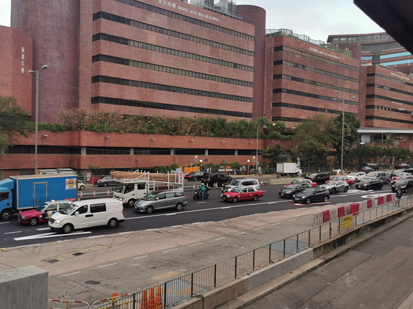紅墈隧道今天早上5點恢復通車,早上約6時45分紅隧九龍入口開始出現車龍,車龍一度排到理工大學李兆基樓對出的康莊道橋面。