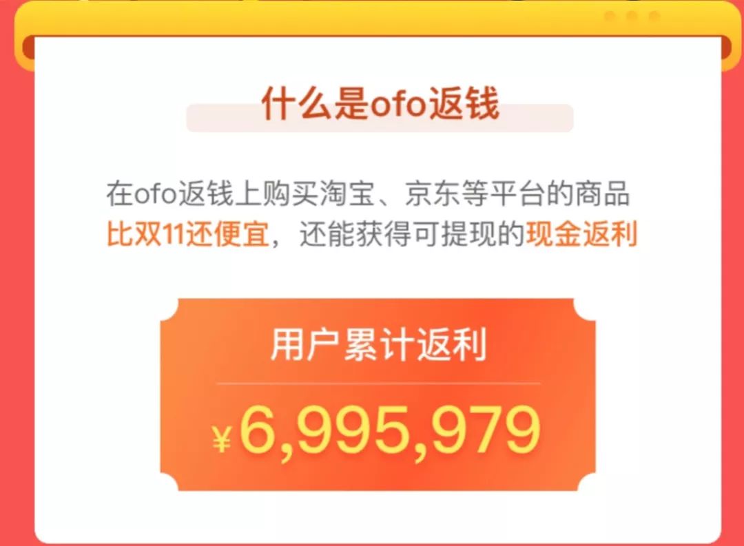 什么是ofo返钱?根据APP官方介绍,在ofo返钱上购买淘宝、京东的商品,不仅可以赚钱,还能提现押金。