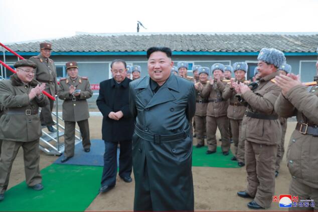 朝鲜人民军总参谋长朴正天陆军大将和人民军大联合部队首长们一同观摩试射。