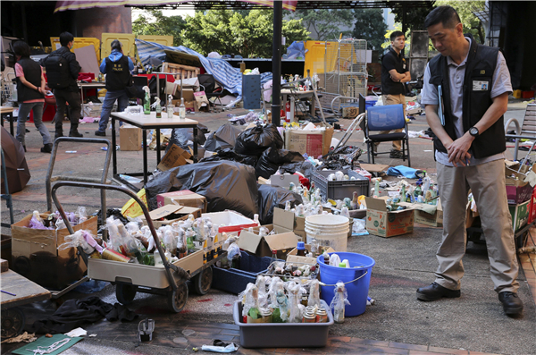 警方從28日起一連兩天在校園內搜證,共檢獲近4000枚汽油彈、逾千件爆炸品及腐蝕性液體和武器。