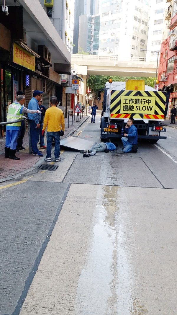 昨日上午9時許,一名姓何約20歲任職工程公司的男工,用手推車運送多塊鋼板返回大角咀的公司。期間行經萬安街2至6號對開推上行人路時,疑失平衡4塊鋼板突然倒塌,壓向他腰部,並撞落身旁駛經的洗街車,繼而倒在地上,重傷昏迷。3名在附近的工友聞訊趕抵,合力將鋼板搬起,但由於鋼板太重,他們要逐塊鋼板搬動。