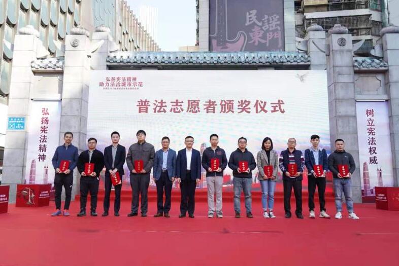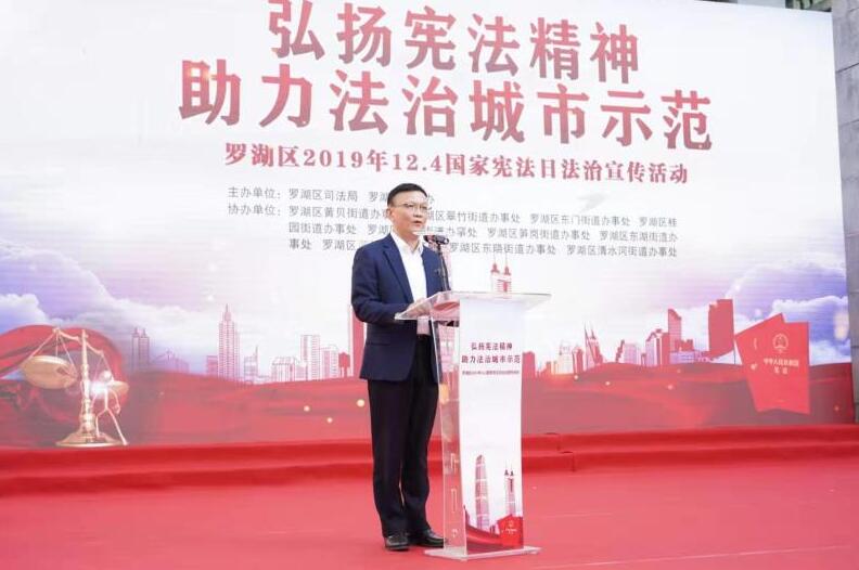 【香港商報訊】記者易小婧通訊員康小苑報道:今年12月4日是第六個「國家憲法日」,也是全國第二個憲法宣傳周。12月3日下午,深圳羅湖區普法辦在東門文化廣場舉辦主題為「弘揚憲法精神、助力法治城市示範」的國家憲法日法治宣傳活動。羅湖區副區長文忠、東門街道黨工委書記呂毅、區司法局局長諶小林、區委統戰部副部長(區僑務局局長)杜陽、羅湖供電局局長譚波等領導出席了本次活動。