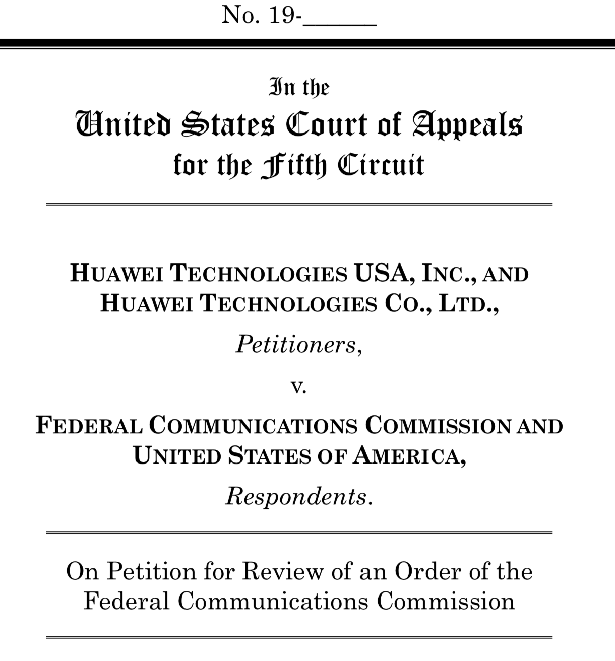 FCC于11月22日通过一项决定,将华为认定为美国国家安全威胁,并禁止美国农村地区运营商使用通用服务基金(USF)购买华为设备。在向美国联邦第五巡回上诉法院提交的起诉书中,华为认为FCC直接认定华为构成国家安全威胁,没有给予华为就相关指控进行反驳的机会,违反了正当程序原则。华为同时认为FCC并未提供任何证据或合理的理由来支撑其武断随意的决定,违反了美国宪法、《行政程序法》等美国法律。