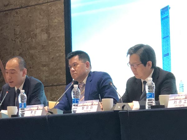 李全(中)表示,內地金融業逐步對外開放,令行業競爭加大,形容行業競爭已從「全運會」演變到「奧運會」。 記者 張智榮攝