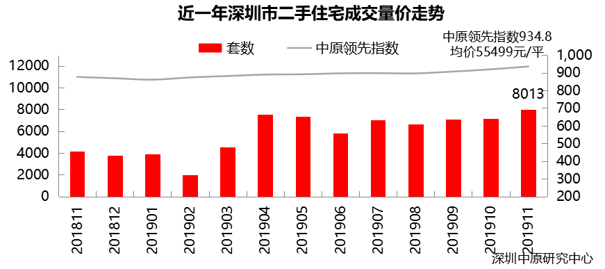2019年11月,深圳楼市由于政策利好不断,新房供需两旺,二手房量价齐升,市场相当活跃。