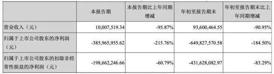 在发布张鹏宇等高管离职公告的同日,暴风集团发布了第三季度财报,2019年前三季度,公司营收9360.05万元,较上年下滑90.95%;归属于上市公司股东的净利润为-6.5亿元,同比下滑184.5%。