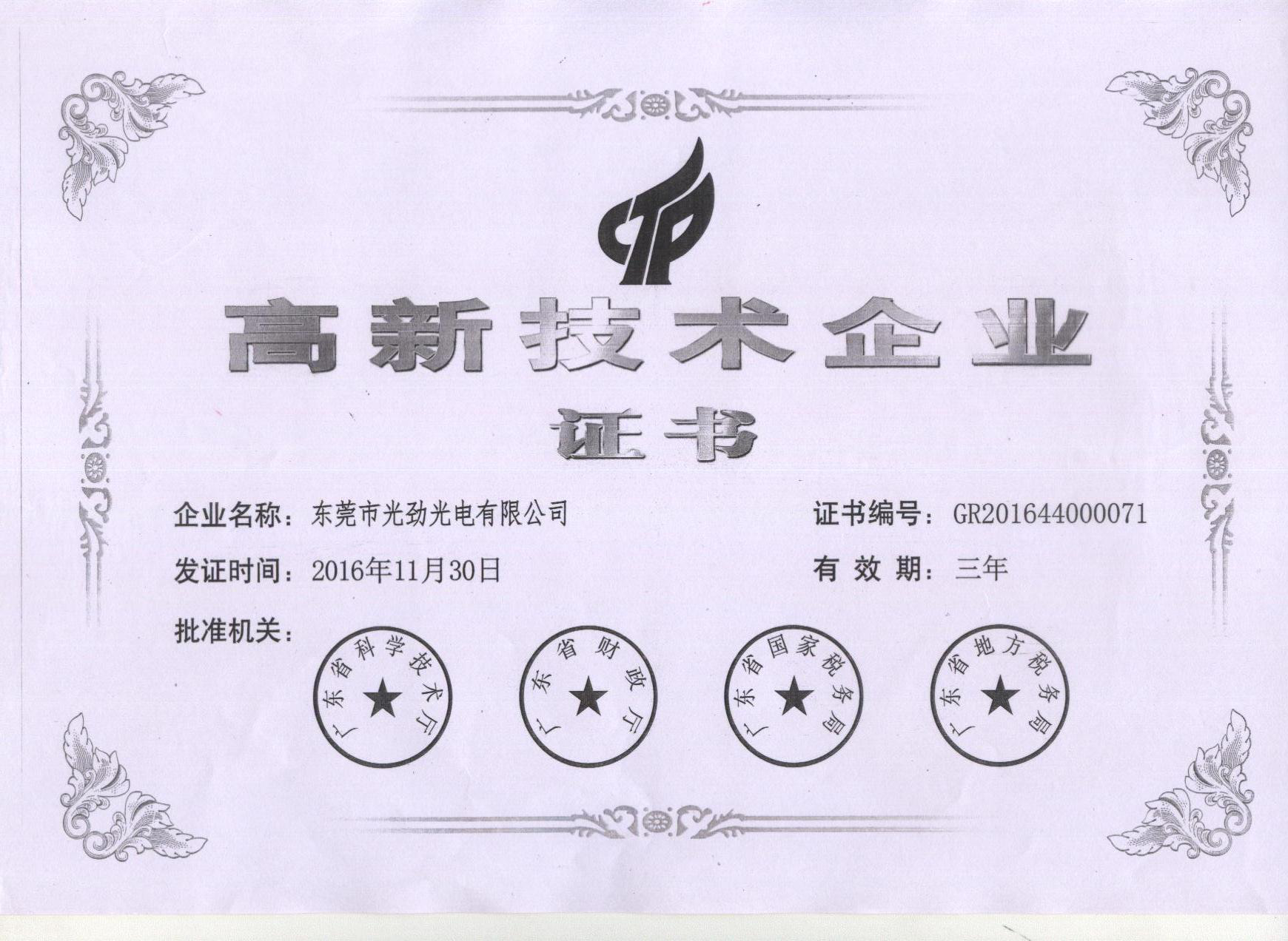 國家高新企業證書