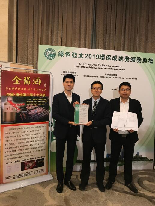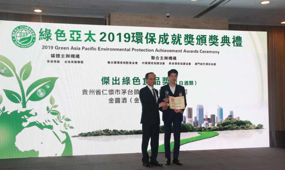 2019年12月5日,香港海逸君綽酒店,「綠色亞太2019環保成就獎」的頒獎典禮上,宣布貴州省仁懷市茅臺鎮金醬酒業的金醬酒(金典53度)獲得傑出綠色食品獎(白酒類)。香港商報常務副社長兼執行編輯張寶興先生,向金醬酒業副總經理鄒浩頒發了沉甸甸的獎盃和證書。同時,香港環境保護協會主席樊熙泰,向其頒發了《香港(國際標準)食品安全證書》。
