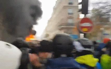 16:30分左右,巴黎共和国广场附近的商铺被砸。有物品被点燃,冒起熊熊大火。警方随后发射催泪弹驱散人群。