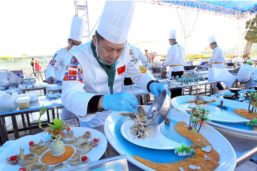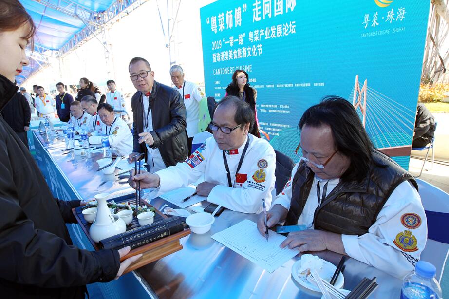 【香港商報網訊】記者陸紹龍報導:12月8日,“粵菜師傅”走向國際--2019“一帶一路”粵菜產業發展論壇暨珠港澳美食旅遊文化節在珠海拉開帷幕,來自港珠澳各餐飲企業的18位廚師在珠海比拼廚藝。“一帶一路”沿線國家的數十位大廚現場烹飪異域美食,現場展示的上千種特色美食引人垂延欲滴。