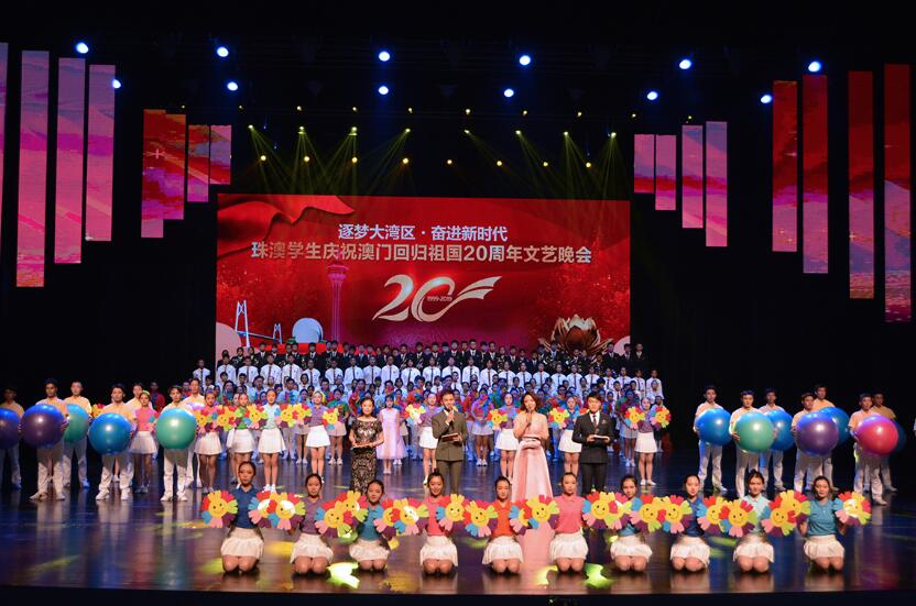 【香港商報網訊】記者陸紹龍報導:12月8日,“你可知Macau,不是我真姓,我離開你太久了母親……”。“珠澳學生慶祝澳門回歸祖國20周年文藝晚會”在《七子之歌--澳門》優美的合唱中盛大開場,珠澳兩地上千名青年學子在珠海大劇院內載歌載舞,共賀澳門回歸祖國20周年。