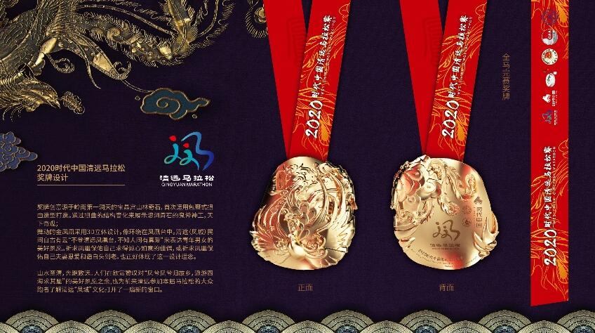 2020年清馬賽事的獎牌設計也結合了全新的嘗試,首次運用包裹式扭曲造型打造,通過扭曲的結構變化來展示嶺南第一洞天——寶晶宮溶洞奇石的鬼斧神工;而獎牌上舞動的金鳳凰采用3D立體設計,近看就像環繞在鳳凰臺中,讓在贊嘆“鳳兮鳳兮歸故鄉,遨游四海求其凰”之余,也為前來清遠參加本屆馬拉松的大眾跑者打開了“鳳城”文化的窗口。