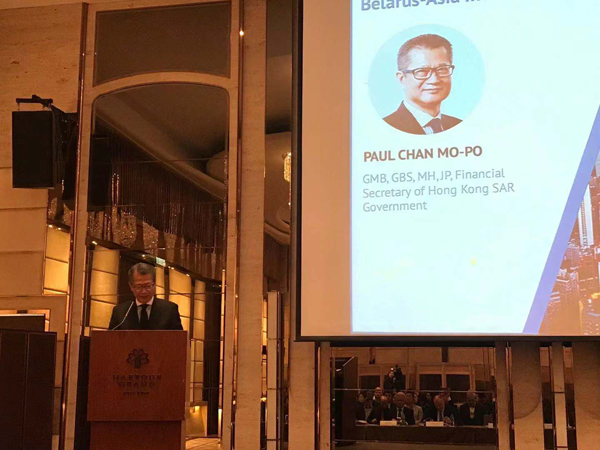 陳茂波表示,香港在一國兩制下具備其他地方沒有的優勢,香港的金融市場準備好迎接白俄羅斯這個市場,並擁有資金投資在白俄羅斯。他指,香港充分利用和內地日益緊密的聯繫,包括一帶一路倡議,白俄羅斯是該倡議的大力支持者,而香港也在一帶一路倡議中扮演重要角色。