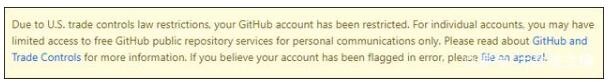 7月一名俄罗斯程序员访问GitHub代码库时的提示框