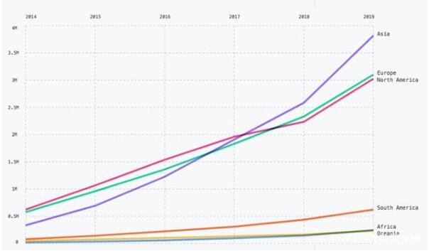 各大洲贡献者数量