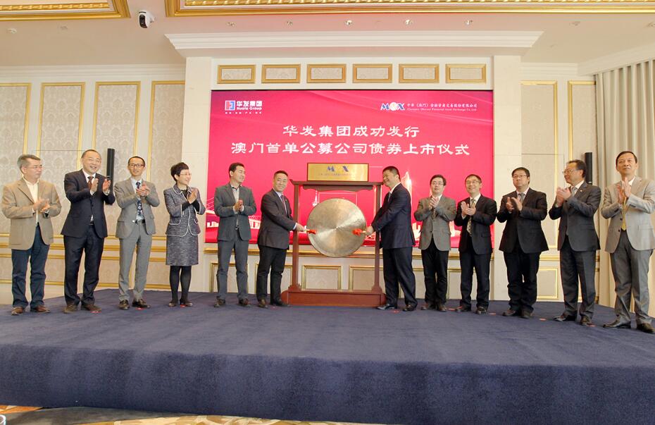 【香港商報網訊】記者陸紹龍報道:12月13日,在澳門回歸祖國20周年即將來臨之際,珠海華發集團成功發行上市澳門首單公募公司債券。據悉,此次發行債券為2億美元,是在中華(澳門)金融資產交易股份有限公司(簡稱「MOX」)登記發行、託管清算、上市交易的第一單公募公司債券,開創了全球企業赴澳門發行公募公司債券的先河。