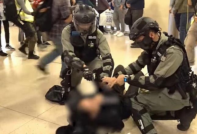 防暴警察在沙田新城市廣場拘捕一名女子。