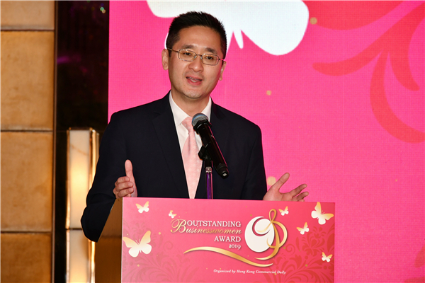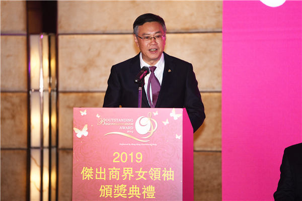 商務及經濟發展局副局長陳百里在「2019傑出商界女領袖評選頒獎典禮」致辞。记者冯瀚文 摄