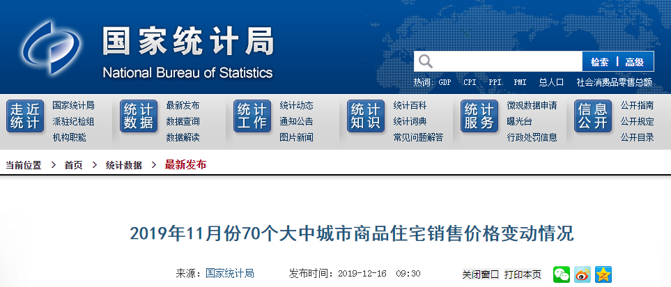 16日,国家统计局发布2019年11月70个大中城市商品住宅销售价格变动情况数据显示,商品住宅销售价格走势总体平稳。