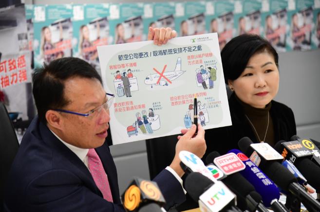 至於一旦出現航班延誤或取消,大致有3種補救方案,包括由航空公司安排改乘其他航班、乘客改期到相同目的地,如乘客不滿意航空公司的安排,可要求退款。基本上所有航空公司都有退款的安排,但有6間公司列明只有在航空公司可以控制的情況下出現延誤,例如航班調配或機件故障等,才可安排退款。
