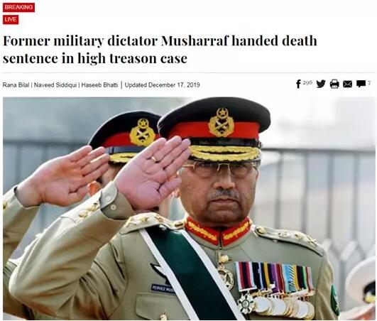 【香港商报网讯】就在刚才,多家巴基斯坦媒体已经确认,被控叛国罪的巴基斯坦前总统穆沙拉夫,被判死刑。