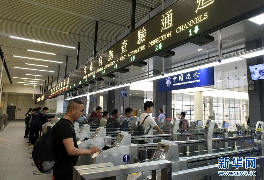 在港珠澳大桥澳门边检大楼,旅客从自助查验通道通关去往广东珠海(11月21日摄)。新华社记者 徐亮 摄
