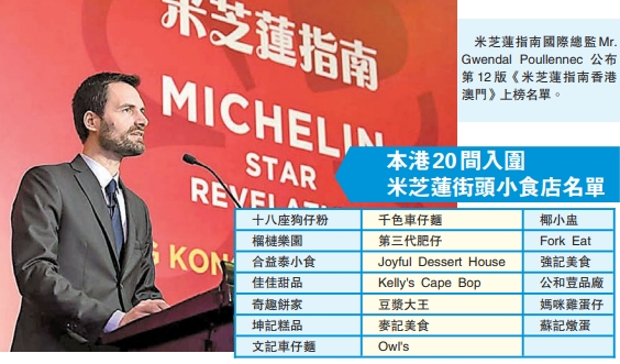 《米芝蓮指南香港澳門2020》發布會昨日於澳門新濠天地舉行,並由米芝蓮指南國際總監Mr.GwendalPoullennec公布第12版《米芝蓮指南香港澳門》的上榜名單。