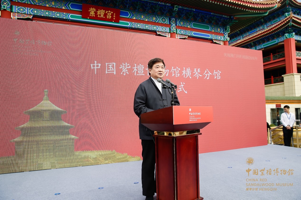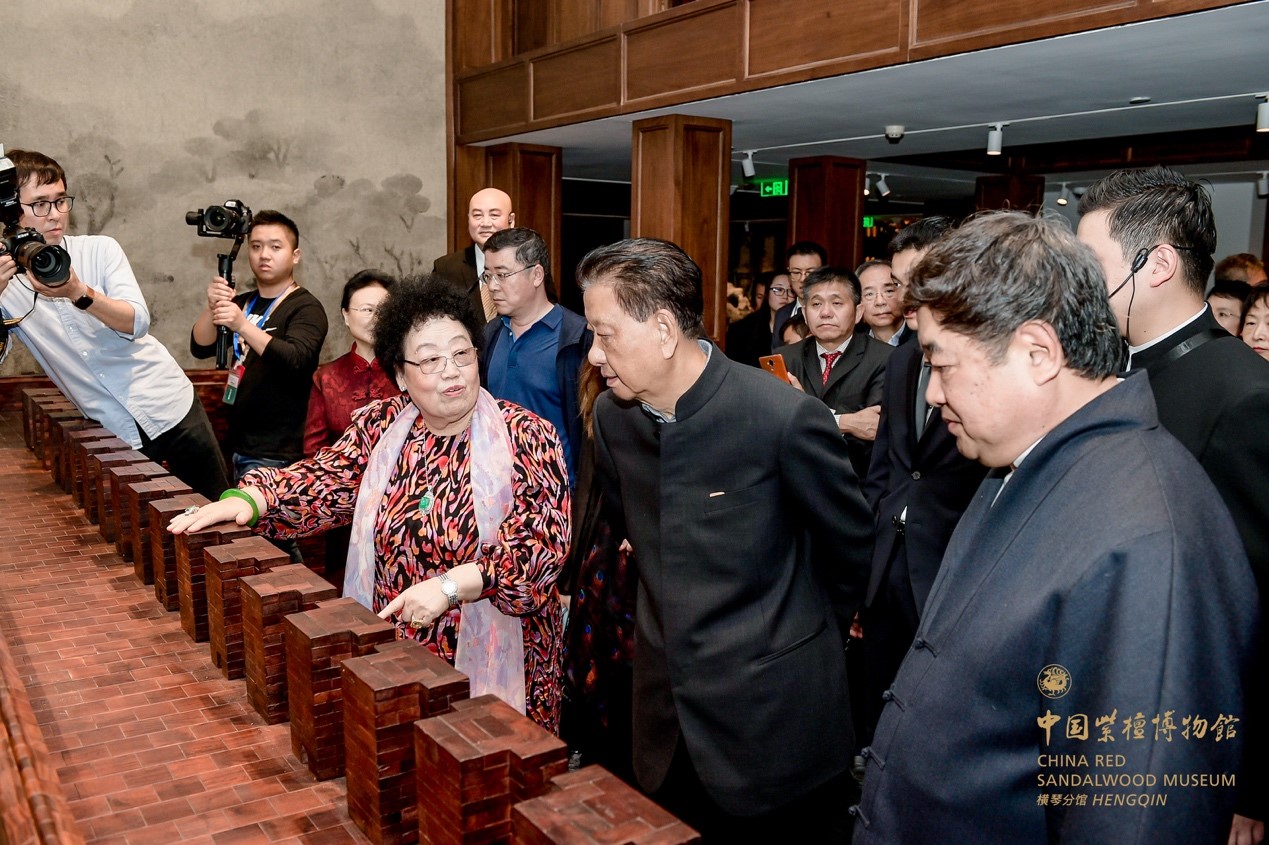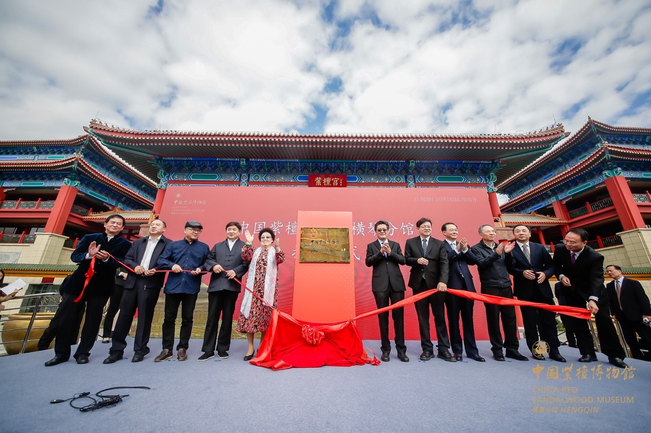 啟幕儀式上,故宮博物院原院長、故宮學院院長單霽翔,故宮博物院黨委書記、副院長都海江,珠海市委書記、市人大常委會主任郭永航,廣東省發改委原主任何寧卡,澳門特別行政區政府教育與青年局局長老柏生,國家林業和草原局原副局長、中國野生動物保護協會會長陳鳳學,珠海市委副書記趙建國,珠海市委常委、秘書長吳軾,珠海橫琴新區黨委書記牛敬,富華國際集團董事局主席、中國紫檀博物館館長陳麗華,富華國際集團總裁趙勇,共同為中國紫檀博物館橫琴分館揭牌,向社會各界宣布,中國紫檀博物館橫琴分館正式開館運行。