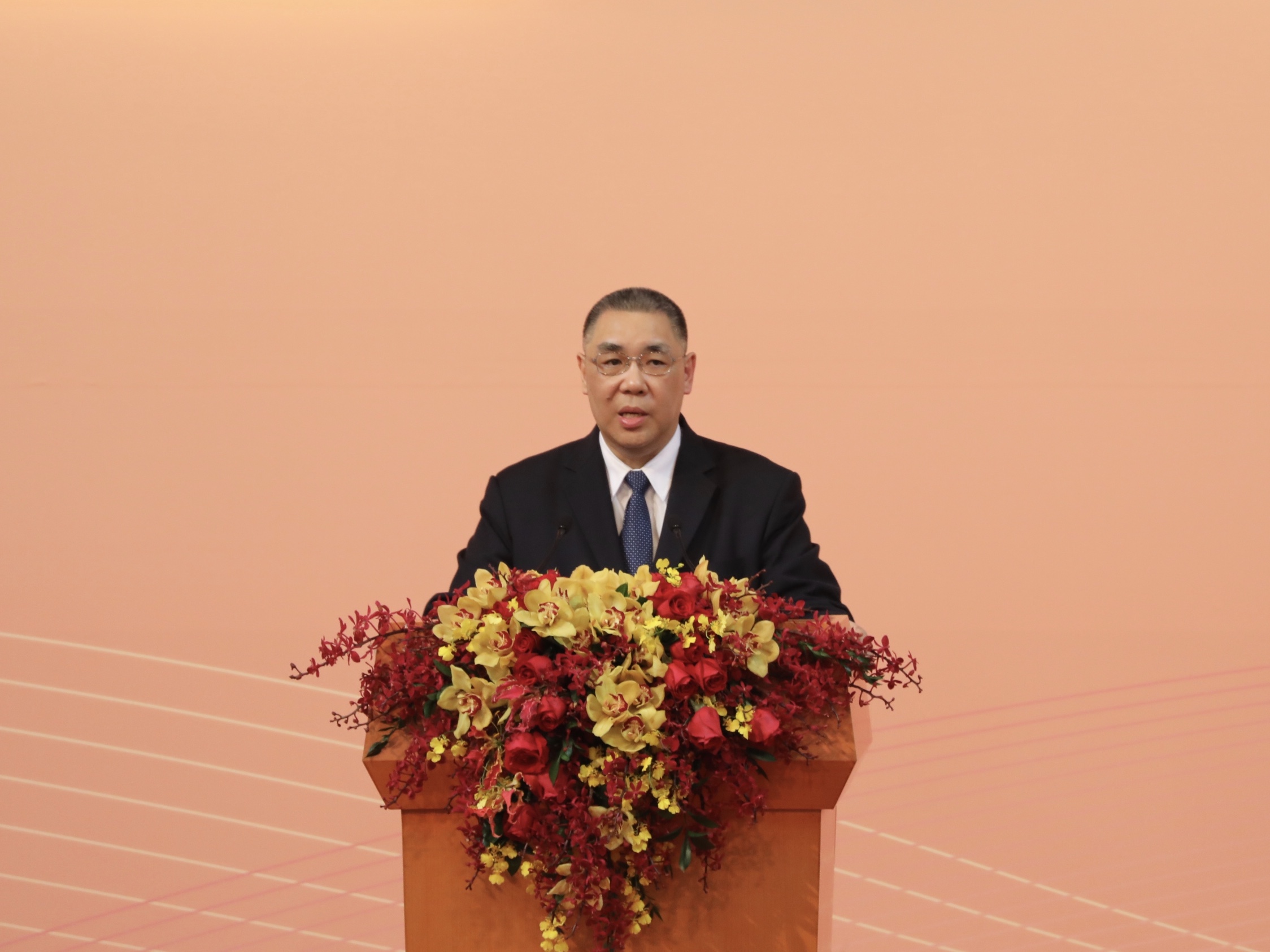 在即將迎來中華人民共和國澳門特別行政區成立二十周年之際,我們懷著十分激動的心情,迎接習主席再次蒞臨澳門,並出席今晚的盛會。我謹代表澳門特別行政區政府和廣大澳門居民,向習主席和夫人,以及中央政府代表團各位領導、各位嘉賓,致以熱烈的歡迎和崇高的敬意。