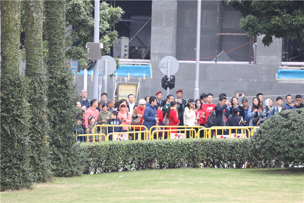 【香港商报网讯】记者李振阳报道:為慶祝澳門特別行政區成立二十周年,澳门特区政府今早8点在新口岸金蓮花廣場舉行升旗儀式。虽然今早澳门天气较为寒冷,但记者注意到,广场周围仍有大批市民早早在场等候,附近居民楼有住户在阳台挂出五星红旗。