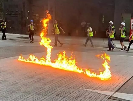 資料圖:香港暴徒在非法集會中竟向警察扔出汽油彈。