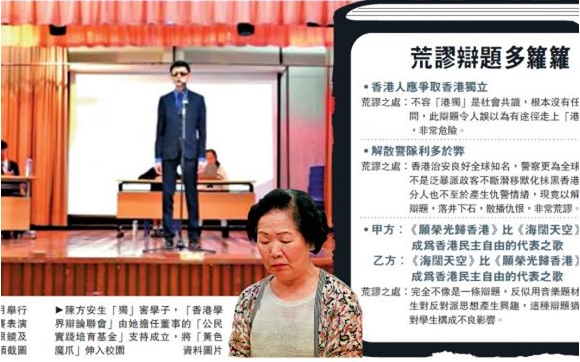 引入大量包括“香港人應爭取香港獨立”、“解散警隊利多於弊”等極度偏頗的辯題,假辯論、真洗腦。縱暴派“黃色魔爪”伸入校園,荼毒學生,學界促必須立即嚴正制止。