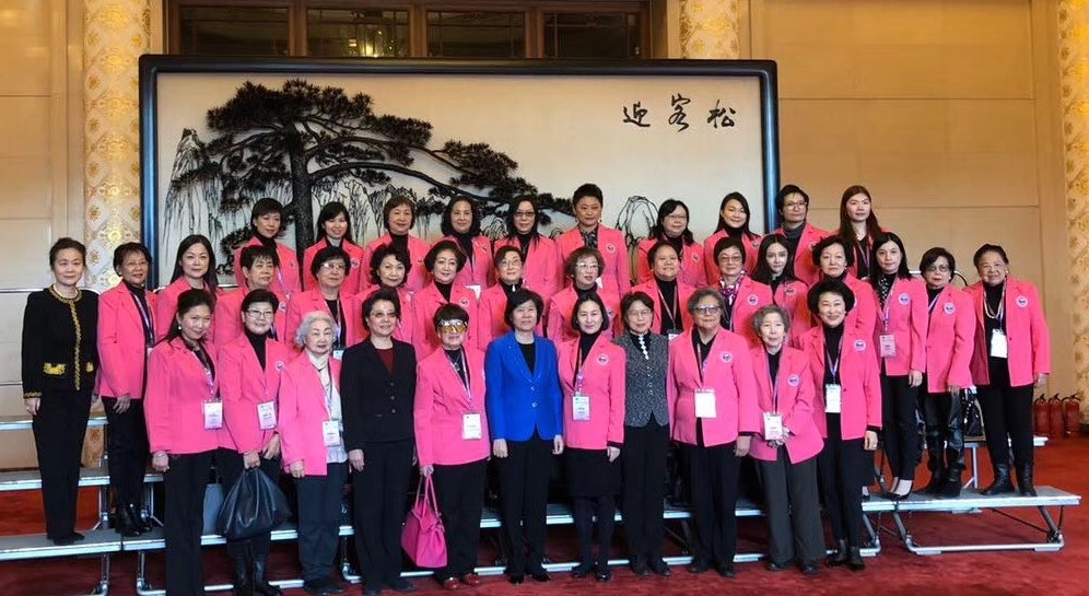 鄭慧賢於北京人民大會堂與全國婦聯主席及副主席合影。