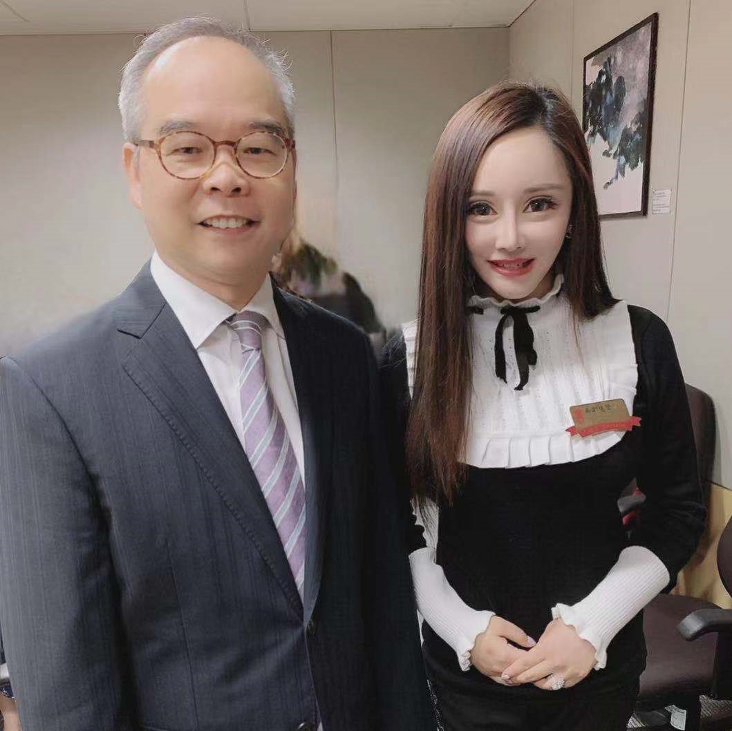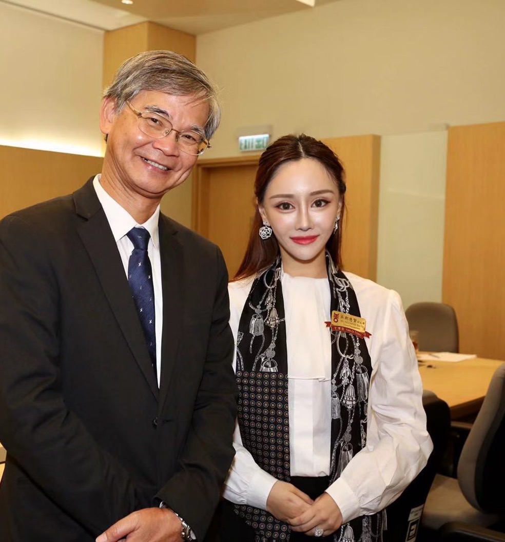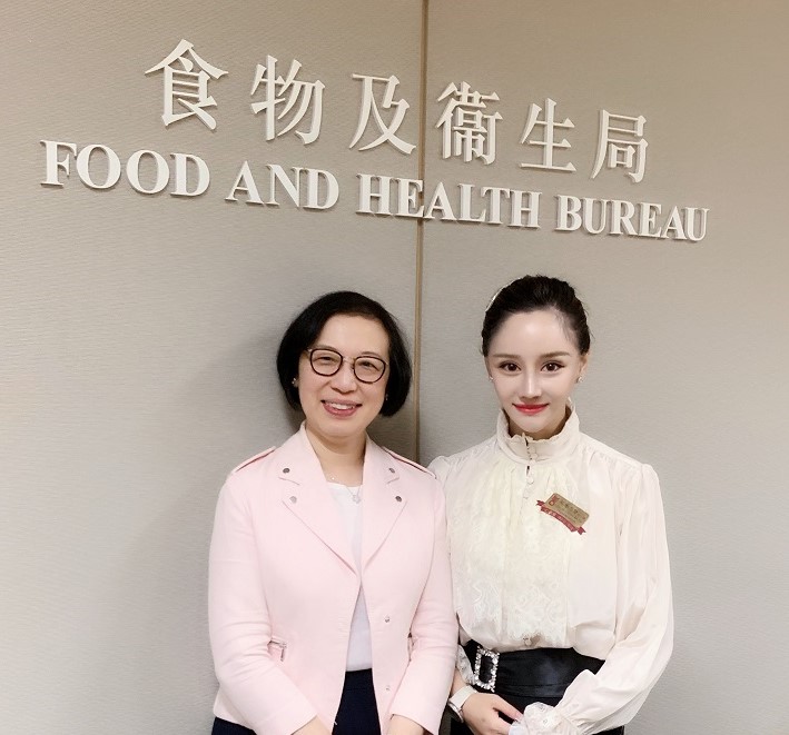 鄭慧賢熱心社會公益,與食物及衛生局局長陳肇始談論政策。