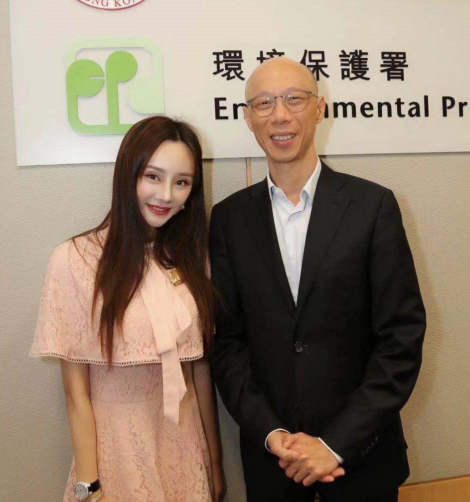 鄭慧賢與環境局局長黃錦星討論環境保護問題。