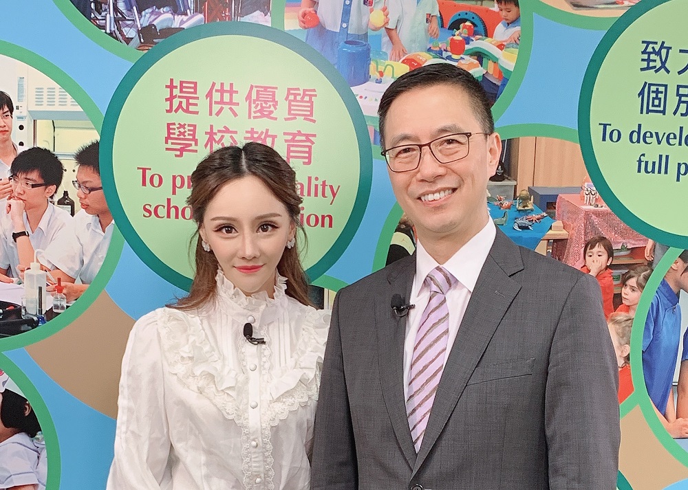 鄭慧賢為五子之母被邀請與教育局局長楊潤雄拍攝宣傳片段。