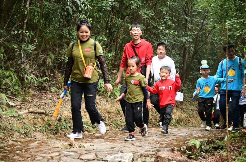 【香港商報網訊】記者程功明報道:暖冬時節,陽光普照,正是出游賞景、登高休閑的絕佳時候,位于東莞樟木頭鎮的觀音山風景區,迎來了一群“奪寶奇兵”,他們身著統一的親子服裝,經過重重的闖關,尋找叢林深處的“植物精靈”。22日,為讓孩子們走進森林,擁抱自然,觀音山風景區舉行了粵港澳首屆觀音山森林文化節系列活動之森林精靈大冒險,50余組家庭走進觀音山,以叢林探險的方式,從5條主題線路出發,途中根據藏寶路線、通過任務闖關不斷前進,尋找觀音山森林深處珍稀的白桂木、蘇鐵蕨、金花茶、桫欏、金線蓮5種野生植物,感受“尋寶”的樂趣,在運動與思考中感受綠意盎然的森林風光,獲得一段難忘的親子時光。活動中,主辦方為參與活動的親子家庭送上“一口好氧”,選取負氧離子濃度極高的五福林深處的新鮮清氧,讓大家深入感受森林魅力的同時,還可將觀音山的好氧帶回家。