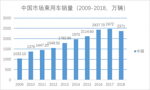 但与此同时,从2009年到2018年,中国乘用车市场销量从1033.1万辆,增加到了2371万辆。