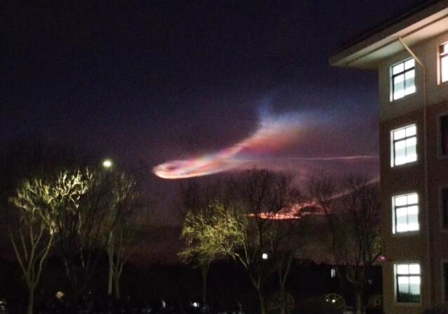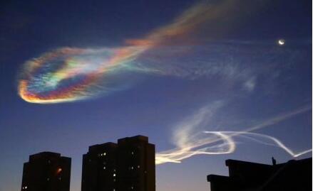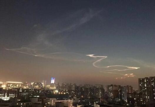 北京“七彩祥云”,可能是巨浪-3飞行尾迹。图源:微博@火星来的蛋崽