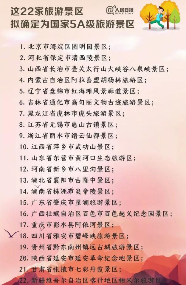 文旅部宣布,拟确定北京市圆明园景区、内蒙古自治区阿拉善盟胡杨林旅游区等22家旅游景区为国家5A级旅游景区。