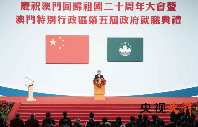 在隆重慶祝了新中國成立70周年之後,我們又迎來了澳門回歸祖國20周年的重要時刻。12月20日,習近平主席出席慶祝澳門回歸祖國20周年大會暨澳門特別行政區第五屆政府就職典禮並發表重要講話。習主席深情回顧20年來澳門特色“一國兩制”成功實踐的重大成就,深刻總結澳門跨越式發展的成功要義,並以“4點希望”為推動“一國兩制”制度體系更加完善指明了前進方向。習主席的重要講話必將推動“一國兩制”實踐取得更大成功!