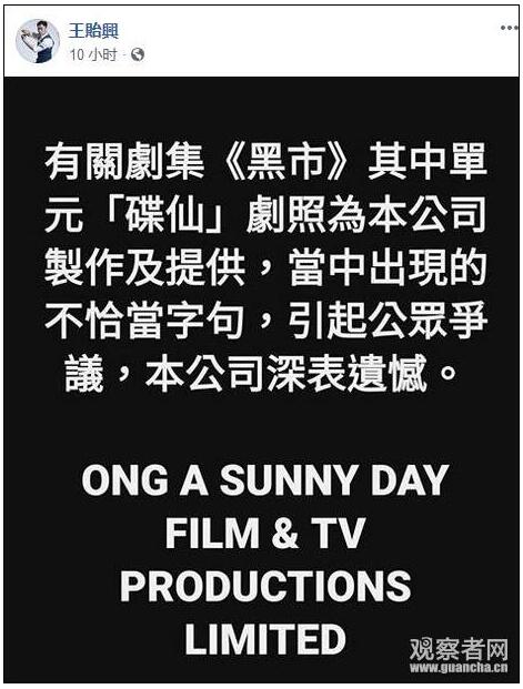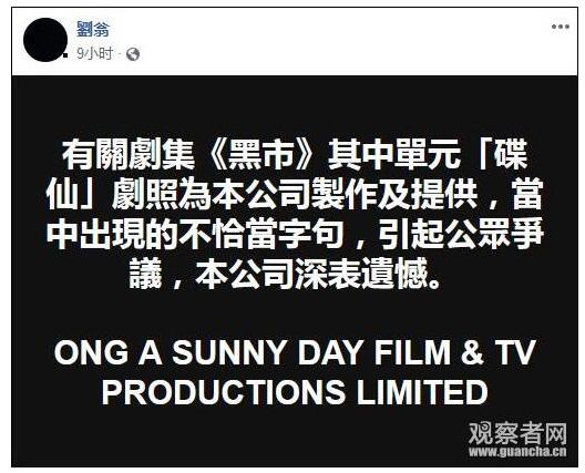 剧组声明发布后,电视频道ViuTV也通过官博迅速做出回应,删除了涉事海报并致歉。