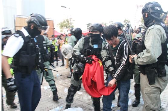 日前中環集會有人辱國旗,警方投訴港台相關報道用詞失實。(資料圖)