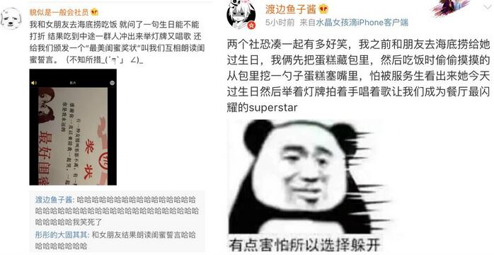 前段时间,一篇《千万不要让海底捞知道你生日,太可怕了哈哈哈哈》的文章刷屏,细数了在海底捞过生日时得到的一系列暖心但令人尴尬的服务,包含声势浩大投屏、举LED灯牌、唱生日歌引发全场关注以及强行表演舞面等,甚至一度成为朋友间讨论的话题“恨他就去海底捞给他过生日”。同时,文章还搜集了网友在海底捞遇到的其他令人惊讶的服务,广大“社恐患者”表示吃不消。