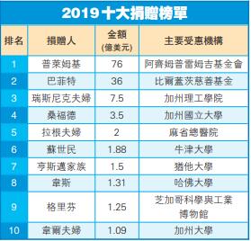 【香港商報网訊】美國《福布斯》雜誌近日統計了2019年公開報道過的大筆慈善捐贈和捐贈承諾,排列出前十大捐贈者。印度科技富豪、Wipro軟件公司董事長普萊姆基以捐贈價值76億美元的股票排名第一,「股神」巴菲特捐贈價值36億美元的股票排名第二。